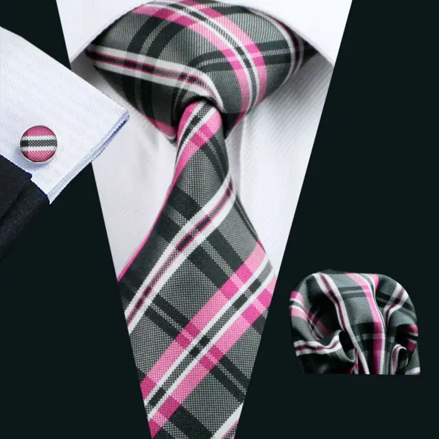 LS-946 2016 핫 판매 남성 화이트 & 블랙 & 자홍색 격자 무늬 100% 실크 Gravata 넥타이 손수건 커프스 세트 남성 정장 웨딩 파티 신랑
