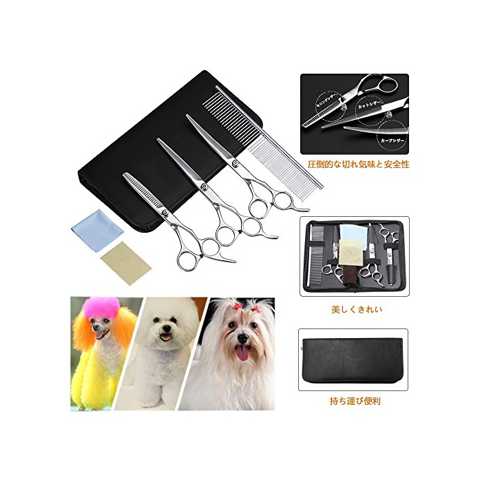 원본상품명:Gliston トリミングシザ? ペットハサミ シザ? トリマ?ハサミ 犬 猫全身美容工具 ペット用毛切る ハサミセット 7点 ステンレス製 ?用ケ?ス付き