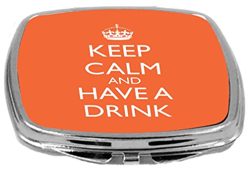 Rikki Knight Compact Mirror, Keep Calm and Have a Drink, Orange