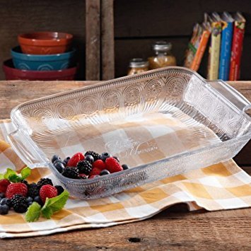 Studio : The Pioneer Woman Publisher : The Pioneer Woman Binding : Kitchen Product Description Beautiful raised decorative design in this glass casserole baking dish makes this stunning bakeware that is perfect for parties, potlucks, and special occasions! Collect the entire matching set of Pioneer Woman Adeline dishes! 0