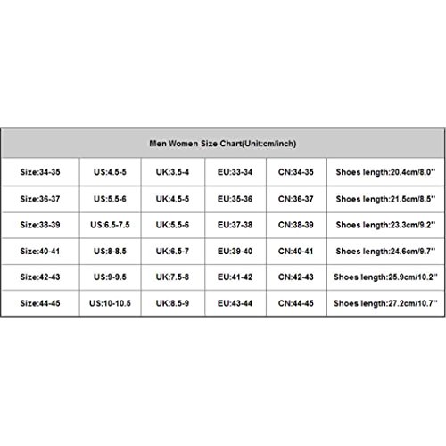 Size:34-35==US:4.5-5==UK:3.5-4==EU:33-34==CN:34-35==Shoes length:20.4cm/8.0' Size:36-37==US:5.5-6==UK:4.5-5==EU:35-36==CN:36-37==Shoes length:21.5cm/8.5' Size:38-39==US:6.5-7.5==UK:5.5-6==EU:37-38==CN:38-39==Shoes length:23.3cm/9.2' Size:40-41==US:8-8.5==UK:6.5-7==EU:39-40==CN:40-41==Shoes length:24.6cm/9.7' Size:42-43==US:9-9.5==UK:7.5-8==EU:41-42==CN:42-43==Shoes length:25.9cm/10.2' Size:44-45==US:10-10.5==UK:8.5-9==EU:43-44==CN:44-45==Shoes length:27.2cm/10.7'