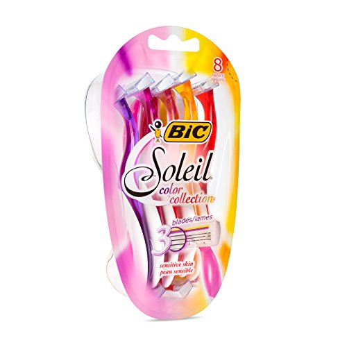 BIC Soleil Color Collection 3-Blade Disposable Razors, Vitamin E Moisturizing Strip, 8-Count