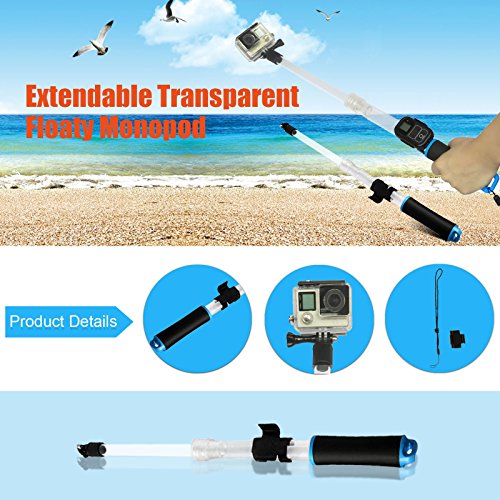 SHOOT Selfie Stick for Go Pro Waterproof Transparent Extension Float Floating Monopod with Remote Clip for GoPro 5 4 3+ 3 SJ4000 SJ5000 SJ6000 Action Cameras(Blue)
