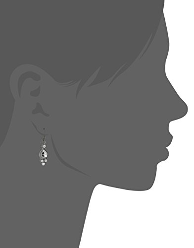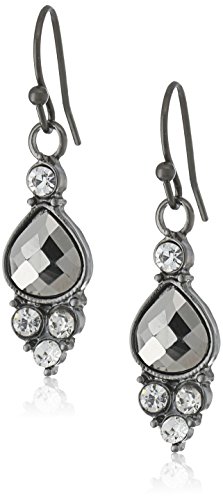 Black tone drop earrings featuring grey pear-shape faceted stones with clear crystal stone accents