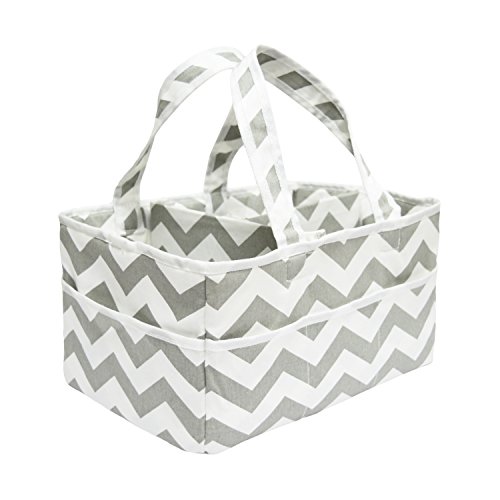 Diaper Organizer and Tote/Caddy with Solid Bottom and Dividers. Extra Strength Velcro Fasteners. Great Diaper Bag for a Baby Shower Gift. (grey)
