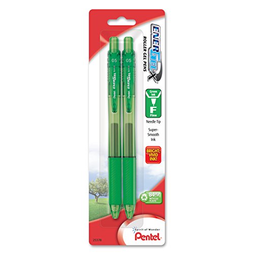Pentel EnerGel-X Retractable Liquid Gel Pen, 0.5mm, Needle Tip, Green Ink, 2 Pack (BLN105BP2D)