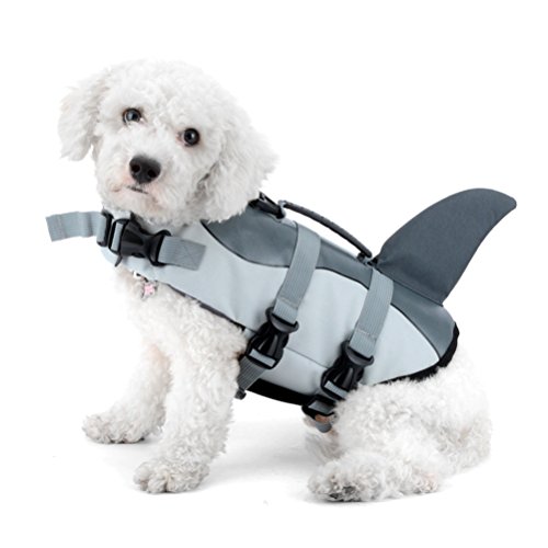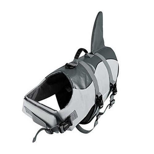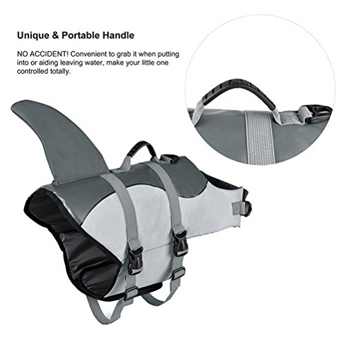 -. Feature : Shark shape design makes it more funny and cute. / Special design for dog safe when swim,beach walk or travel. / Can be used as a life vest, rain coat, or three season coat. / It is portable,easy to use and wash / To fits your pet well,please take a measurement of your dog or cat before purchasing !