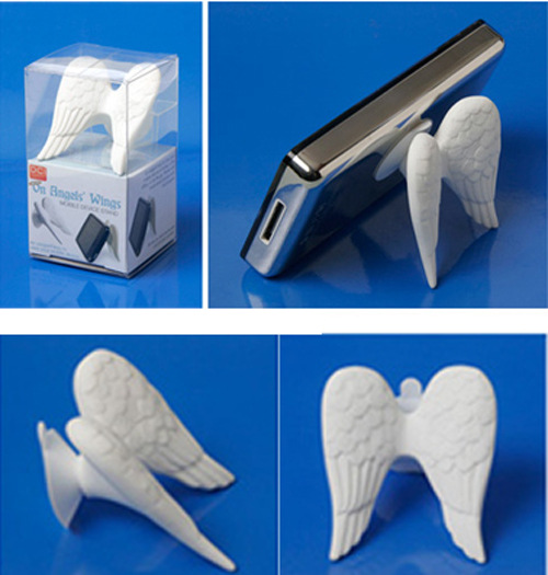 There are categories of angels to watch over everything; now even for your mobile device. These wings function as a heavenly easel allowing you to watch videos without having to hold your phone in your hand. They suction to the back of the phone and easily adjust for landscape or portrait viewing. For home? office or on-the-go.
