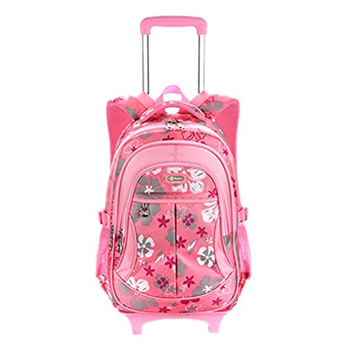 -. Feature : Product Size: schoolbag W*H*T: 45*32*13cm(17.7*12.6*5.2in), trolley(include wheel)height 89cm(35in) / Materials: This backpack is made of excellent nylon fabric, it is waterproof, wearable and durable. It can perfectly protect books inside the bag from getting wet. It also is not easy to be stained and easy to clean. / Unique Design: Equipped with 2 wheels,which can make it easy to adapt to terrain. Very practical and convenient. / Popular: Perfect designed for your childrens. Pink for girls,Black for boys. The look would be very attractive to girls,especially P.R.Imary school students. / The Rolling Backpack can be steadily installed on the trolley and this trolley has wheels that can be lived up to climb staircases, thus to free students from the heavy schoolbag.