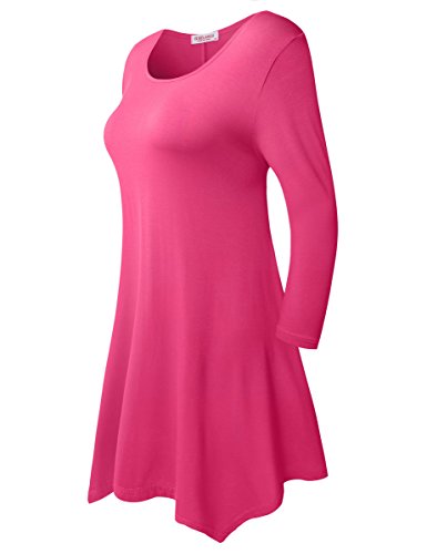 BELAROI Women 3/4 sleeve Swing Tunic Tops Plus size T Shirt (L, Fushia)