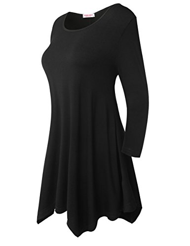 BELAROI Women 3/4 sleeve Swing Tunic Tops Plus size T Shirt (L, Black)