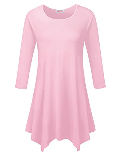 BELAROI Women 3/4 sleeve Swing Tunic Tops Plus size T Shirt (S, Pink)
