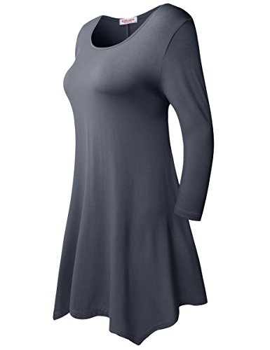 BELAROI Women 3/4 sleeve Swing Tunic Tops Plus size T Shirt (S, Deep Gray)