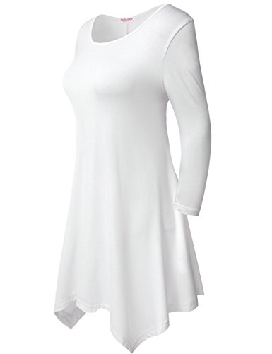 BELAROI Women 3/4 sleeve Swing Tunic Tops Plus size T Shirt (L, White)