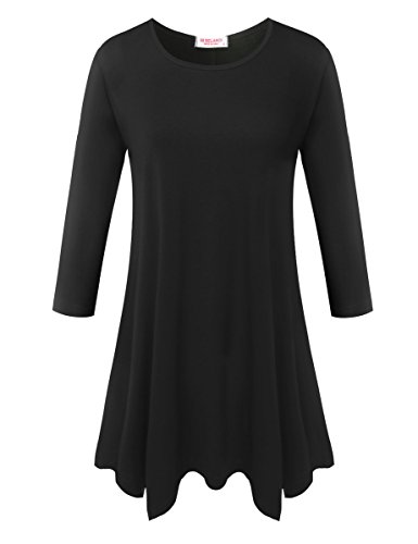 BELAROI Women 3/4 sleeve Swing Tunic Tops Plus size T Shirt (S, Black)