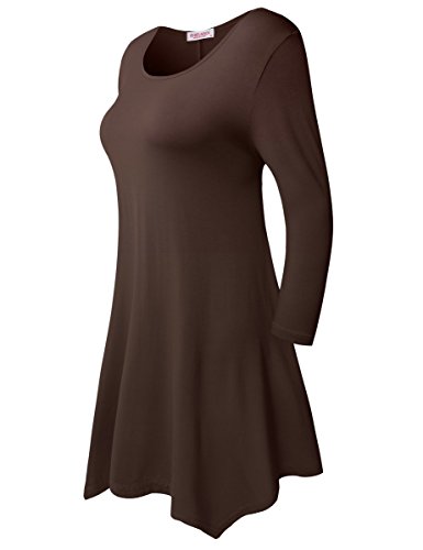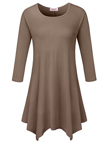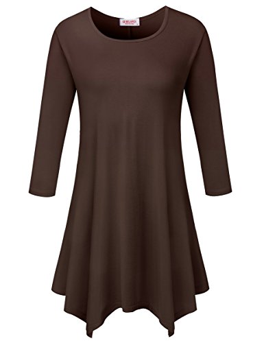 BELAROI Women 3/4 sleeve Swing Tunic Tops Plus size T Shirt (S, Coffee)