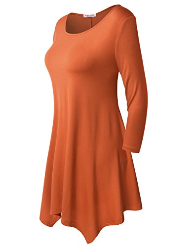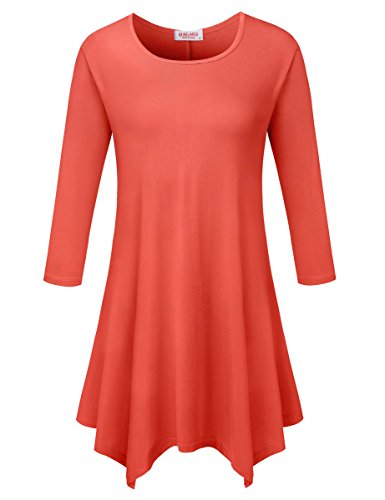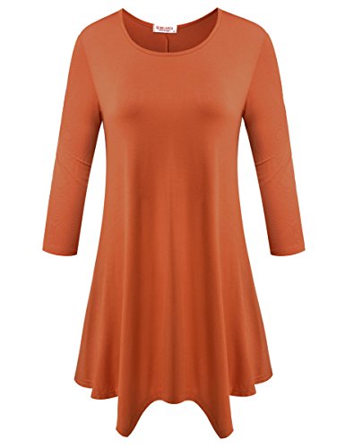 BELAROI Women 3/4 sleeve Swing Tunic Tops Plus size T Shirt (S, Orange)