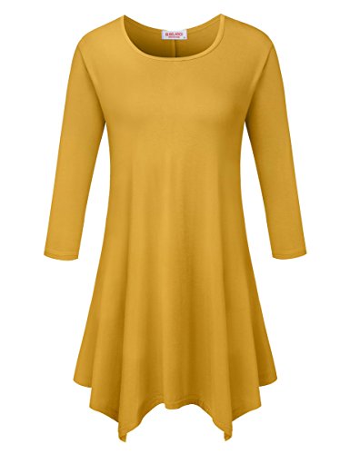 BELAROI Women 3/4 sleeve Swing Tunic Tops Plus size T Shirt (L, Yellow)