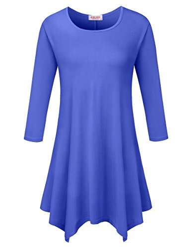 BELAROI Women 3/4 sleeve Swing Tunic Tops Plus size T Shirt (S, Blue)