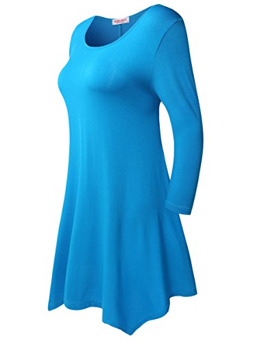 BELAROI Women 3/4 sleeve Swing Tunic Tops Plus size T Shirt (S, Deepskyblue)