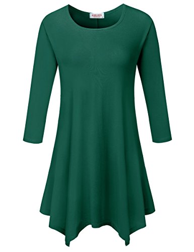 BELAROI Women 3/4 sleeve Swing Tunic Tops Plus size T Shirt (S, Deep Green)