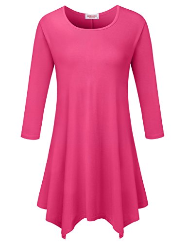 BELAROI Women 3/4 sleeve Swing Tunic Tops Plus size T Shirt (S, Fushia)