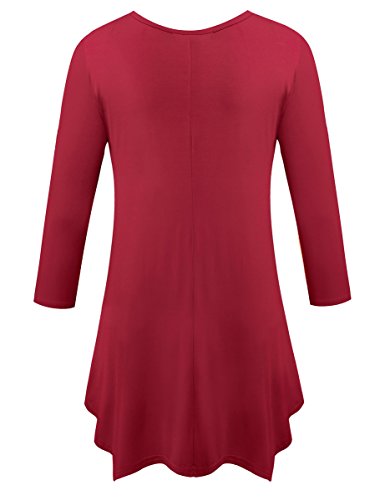 BELAROI Women 3/4 sleeve Swing Tunic Tops Plus size T Shirt (L, Wine Red)