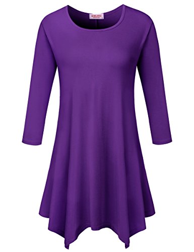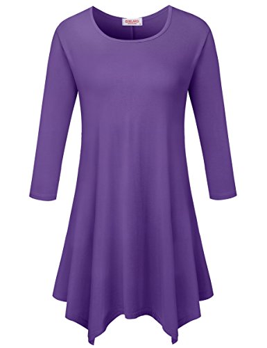 BELAROI Women 3/4 sleeve Swing Tunic Tops Plus size T Shirt (S, Deep Purple)