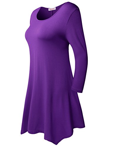 BELAROI Women 3/4 sleeve Swing Tunic Tops Plus size T Shirt (L, Deep Purple)