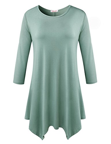 BELAROI Women 3/4 sleeve Swing Tunic Tops Plus size T Shirt (S, Grayish Green)