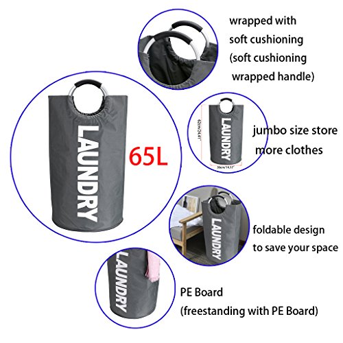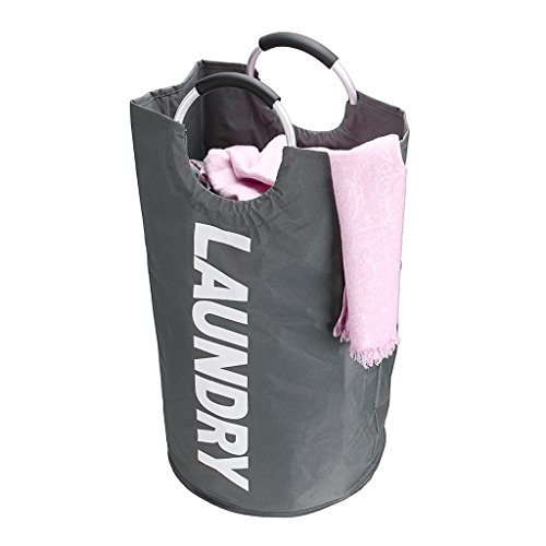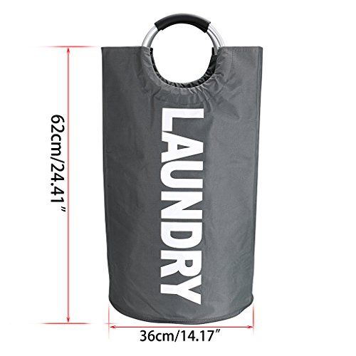 Hipiwe Pop Up Collapsible Laundry Hamper Bags Durable Freestanding Washing Basket Bin With Aluminum Alloy Handles (Deep Gray)