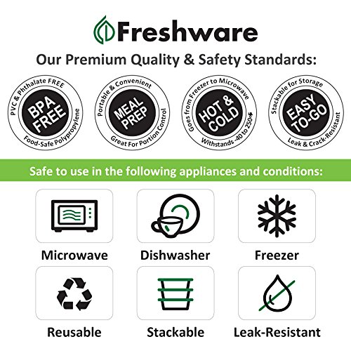 TOP-NOTCH QUALITY - Freshware is made exclusively from FDA Approved and BPA Free materials, these lunch bento boxes are of commercial grade quality. Used by restaurants, caterers, and professionals – these are the leading industry standard for to-go containers, bento boxes, meal prep and kitchen containers. Freshware meal prep containers make sure that your meal will stay fresh, delicious and healthy; unlike most poorly-made lunch boxes that give a strange taste and smell to your food.