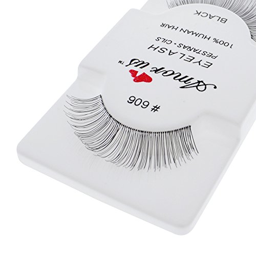 Amorus 12 Pairs Multipack #606 False Eyelashes Dozen Set 100% Natural Hair Black Handmade Comfortable Reusable Fake Lashes Pack