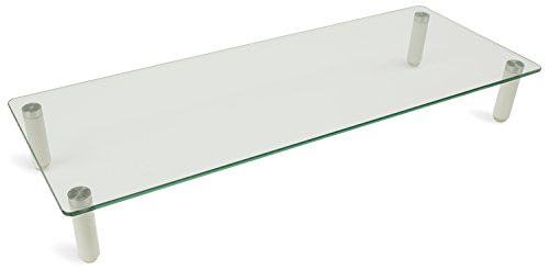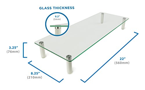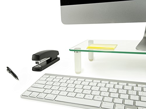 This elegant glass stand can be used as an office desktop stand for PC and Apple computer monitors or for other office equipment. It elevates displays by 2.75 inches. Creates additional horizontal surface under the monitors to store your laptop, keyboard or other office related document or accessories.