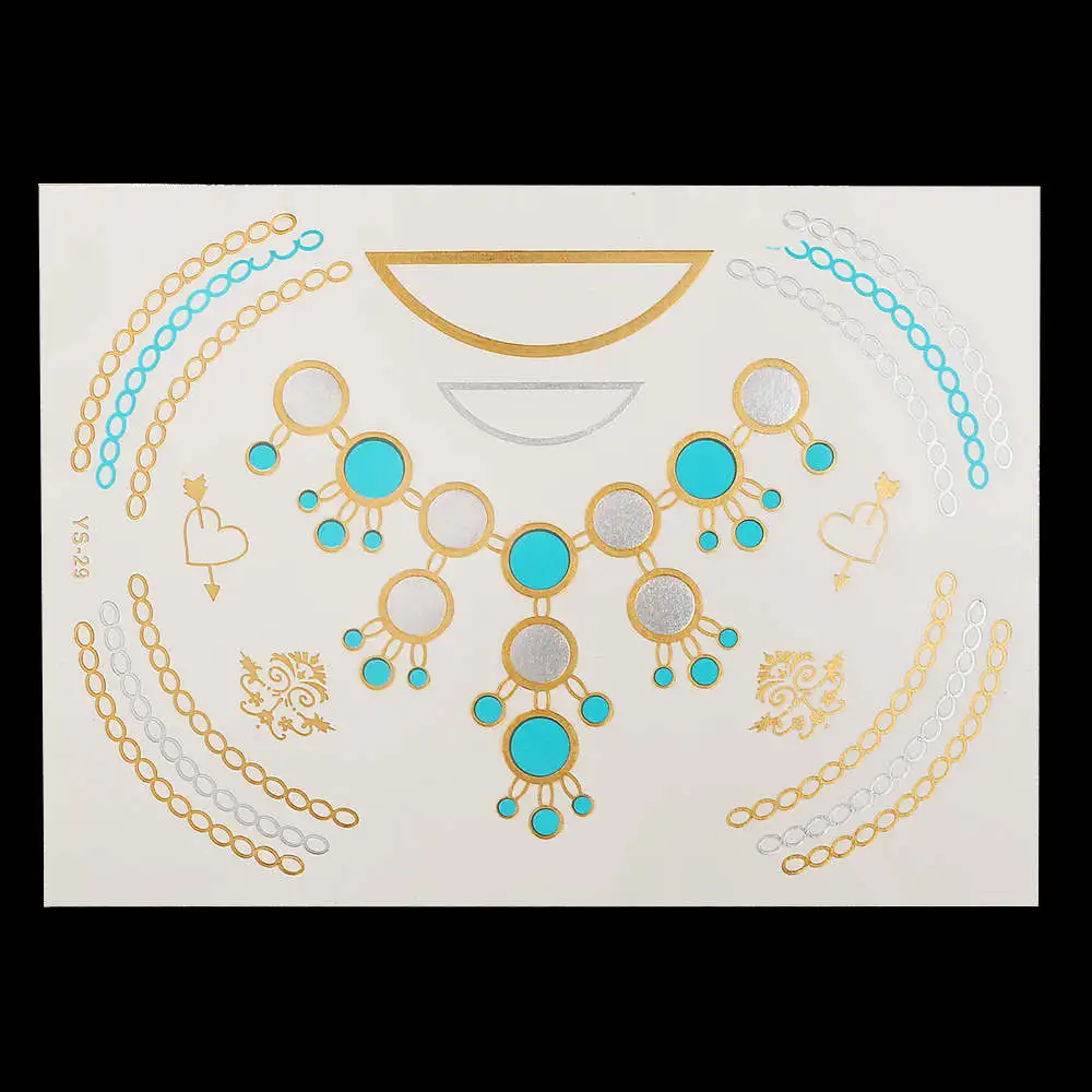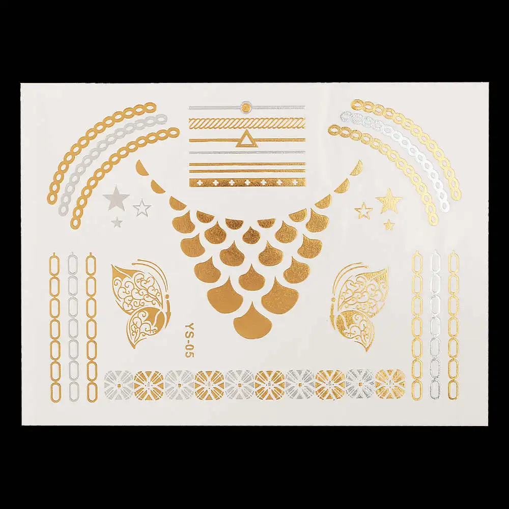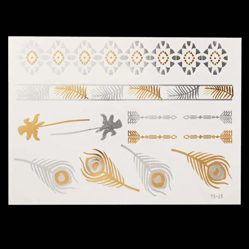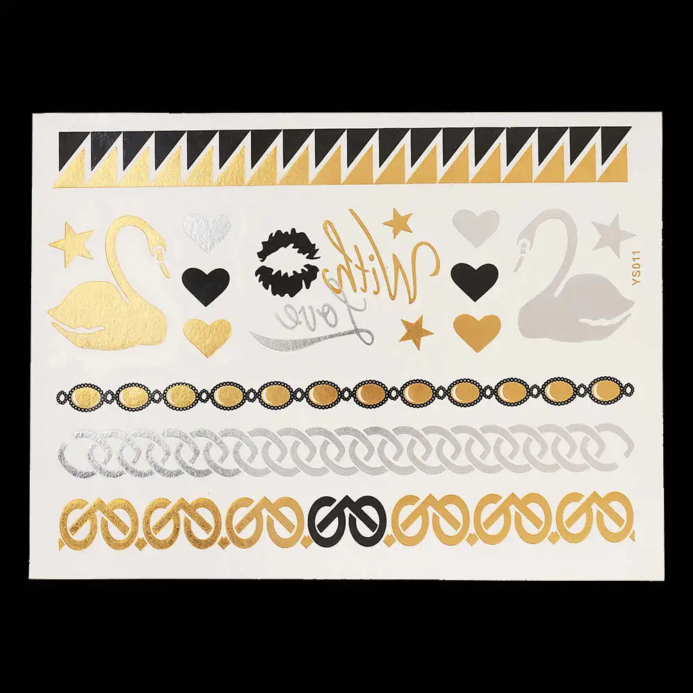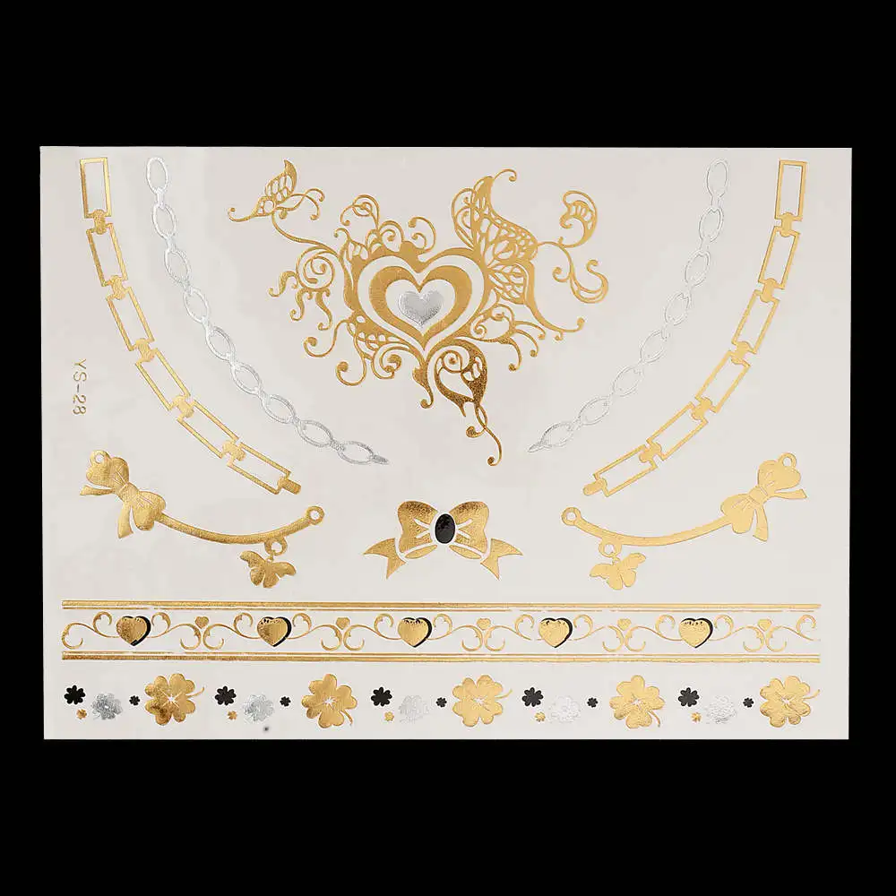 Flash Metallic Gold Silver Tattoo Design:Makeup / Necklace / Choker / Earring / Jewelry / Feather Flower Heart