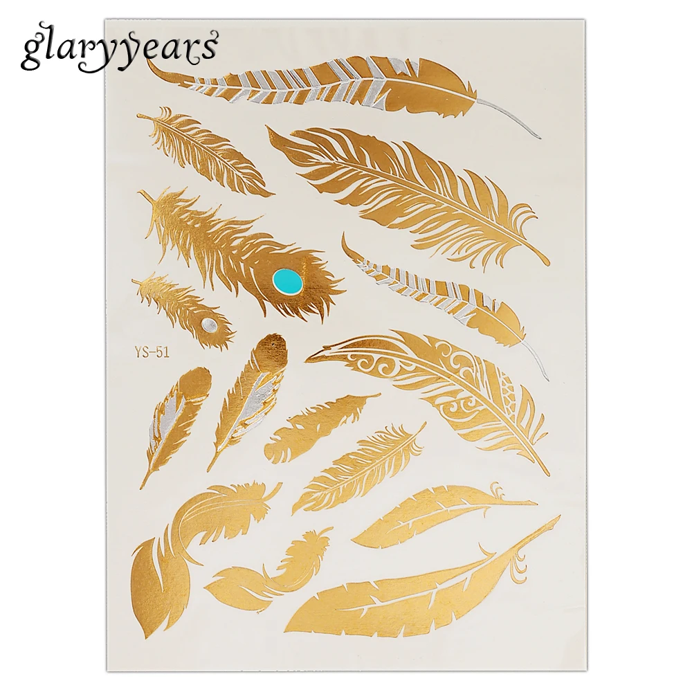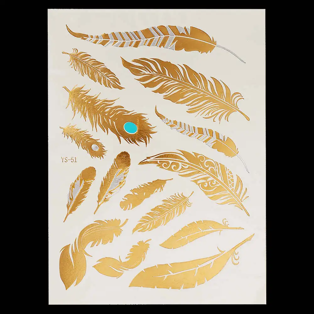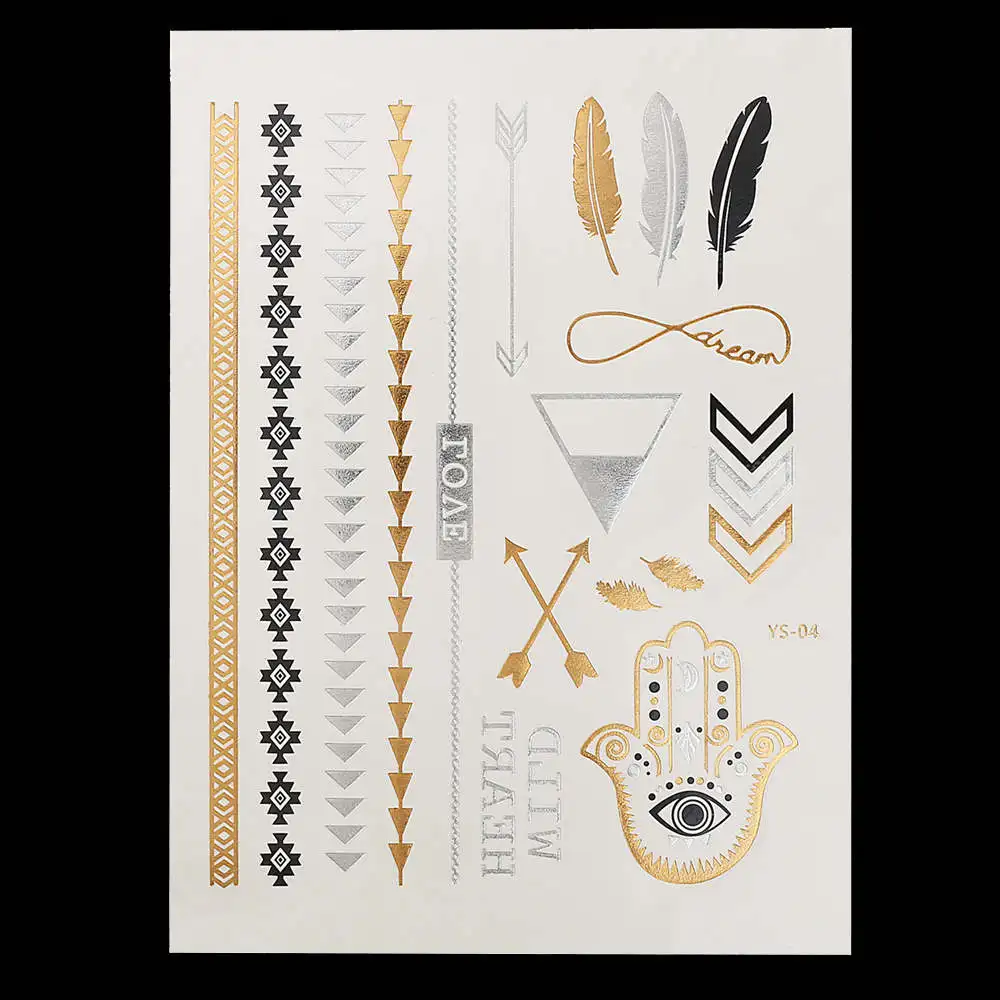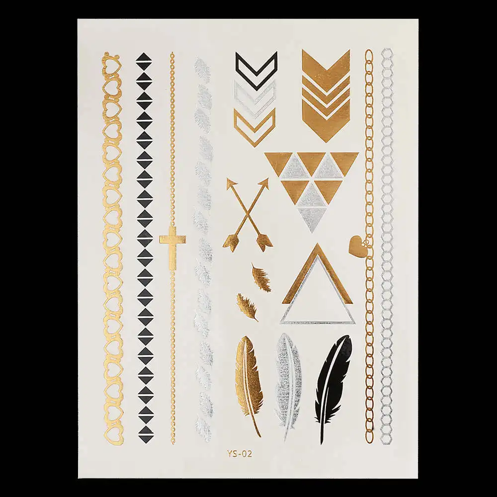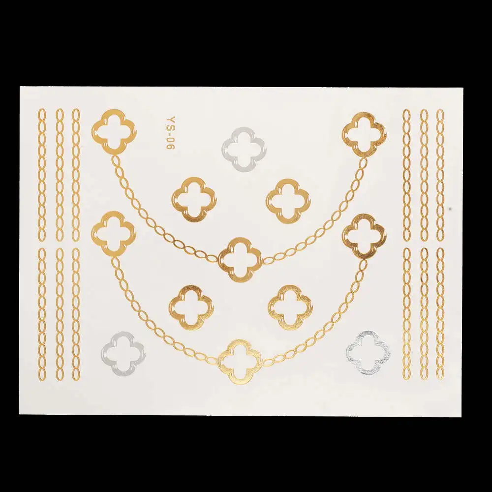 Flash Metallic Gold Silver Tattoo Design:Makeup / Necklace / Choker / Earring / Jewelry / Feather Flower Heart