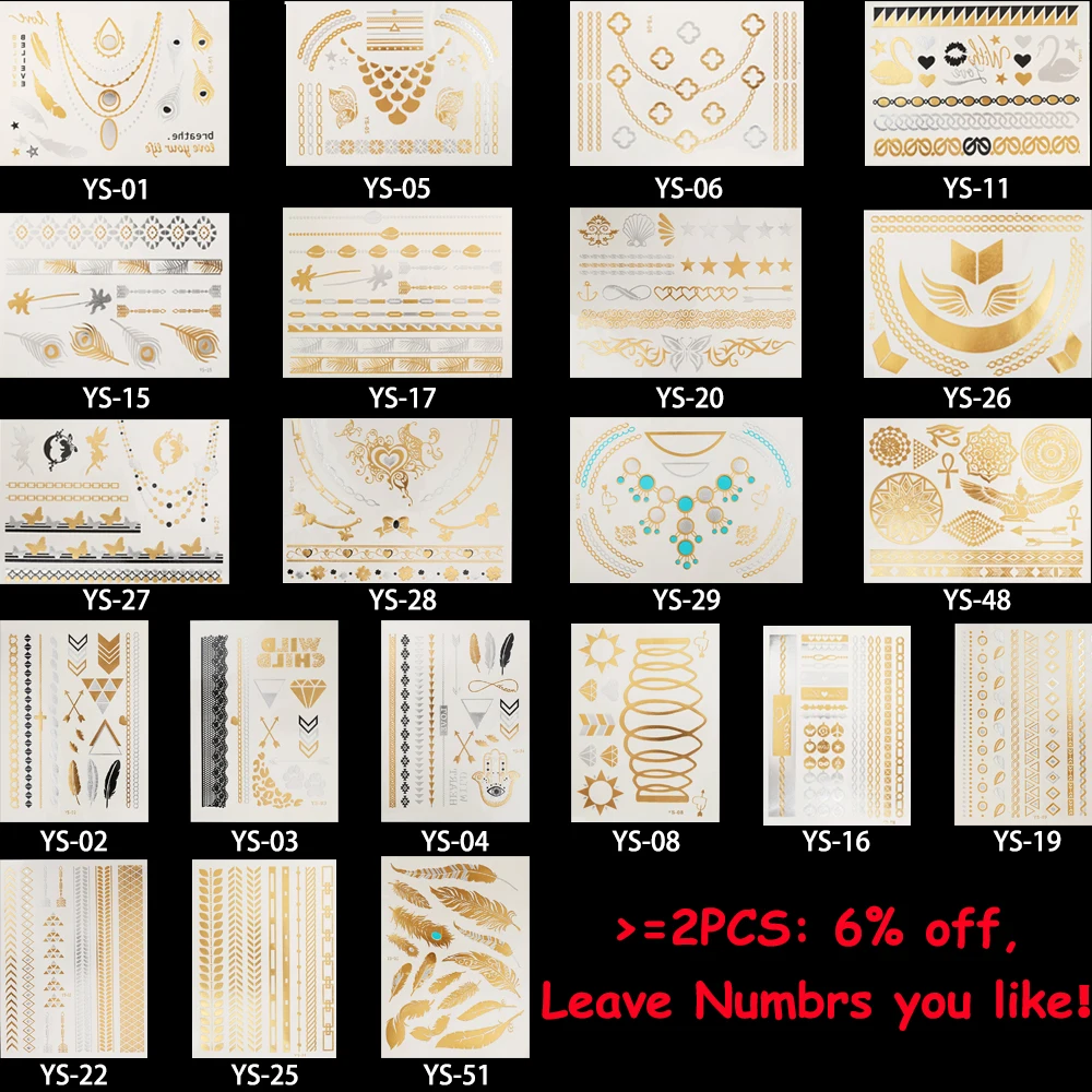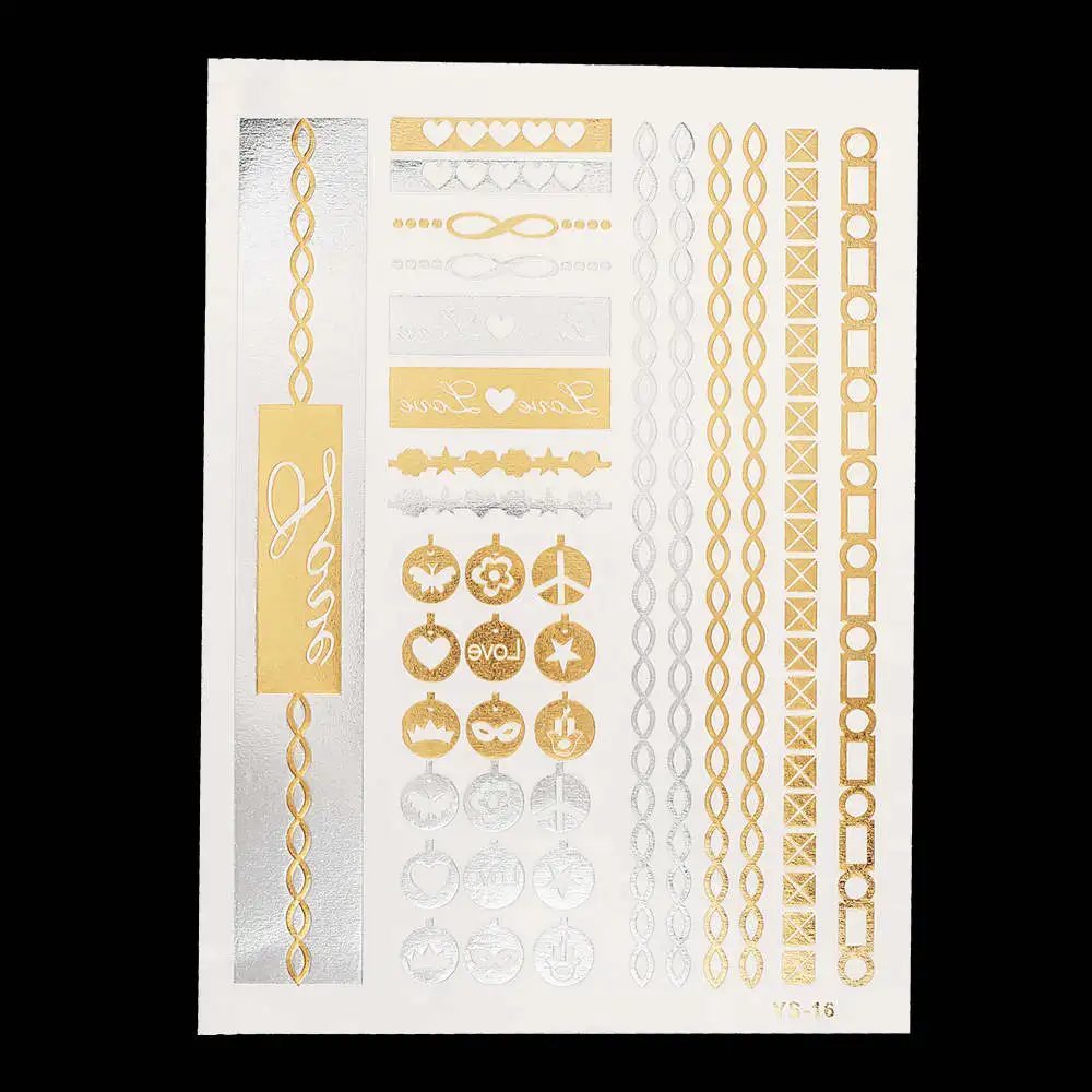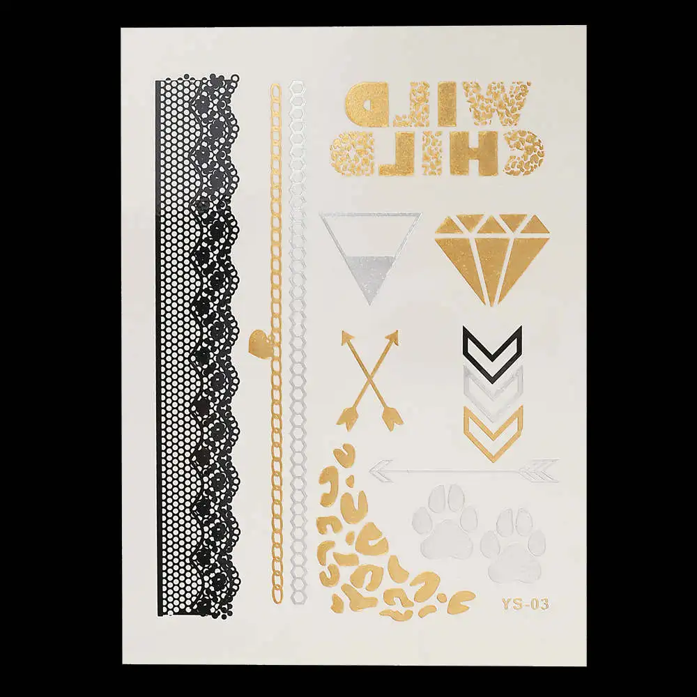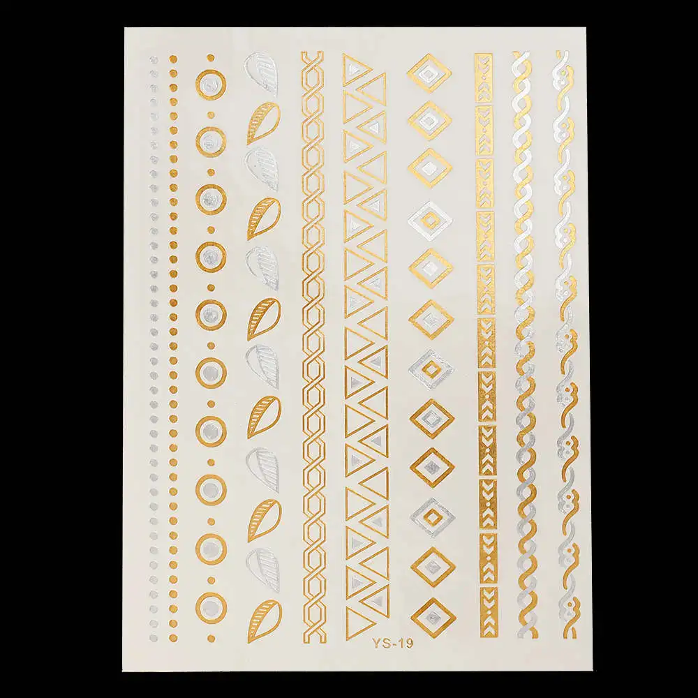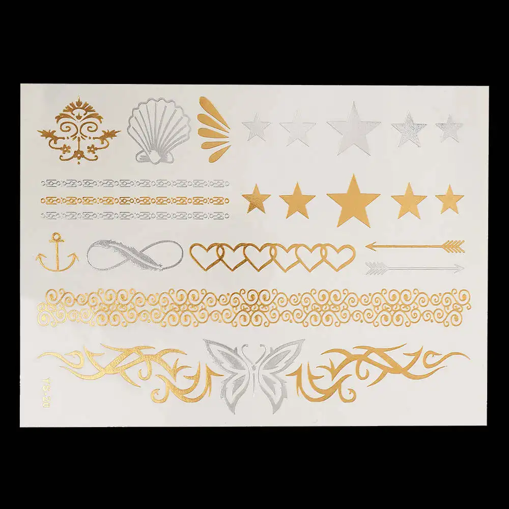 Temporary Tattoo Style:Temporary Waterproof Flash Metallic Gold Silver Body Tattoo Sticker