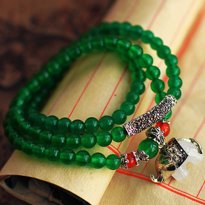Green Agate Bracelet Multilayer Elephant