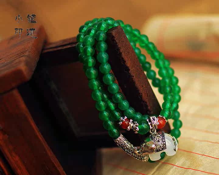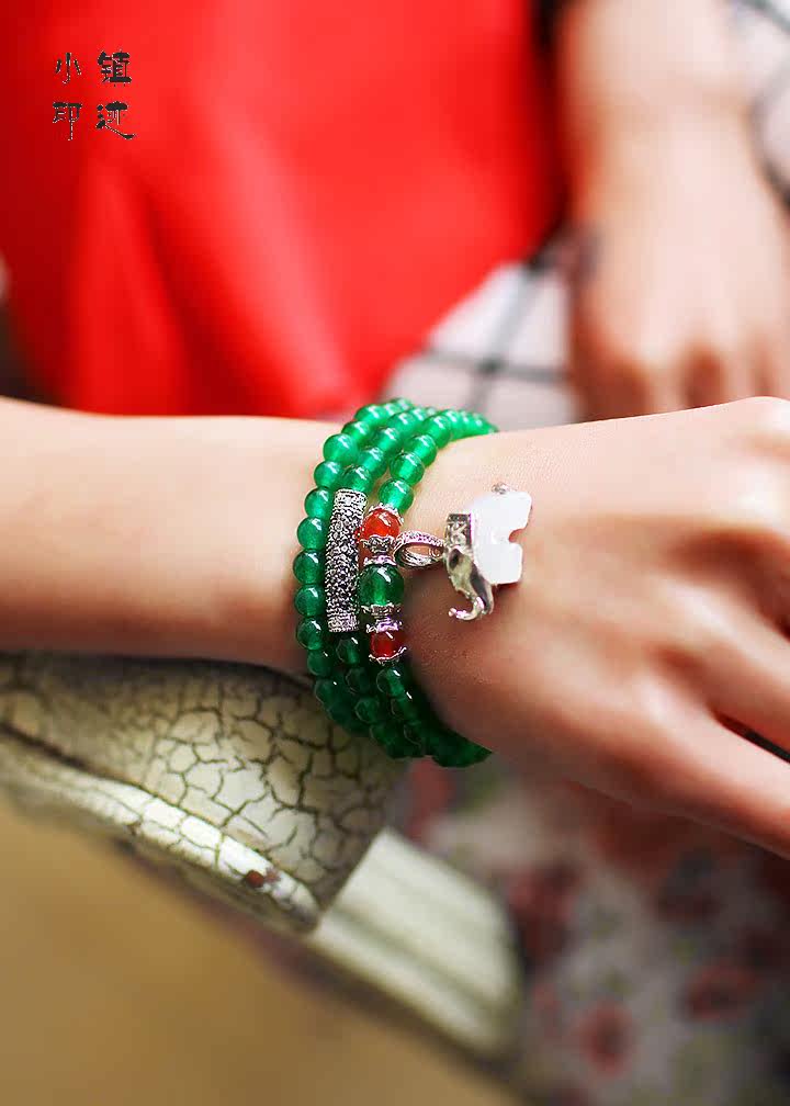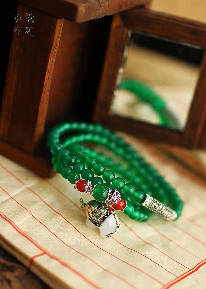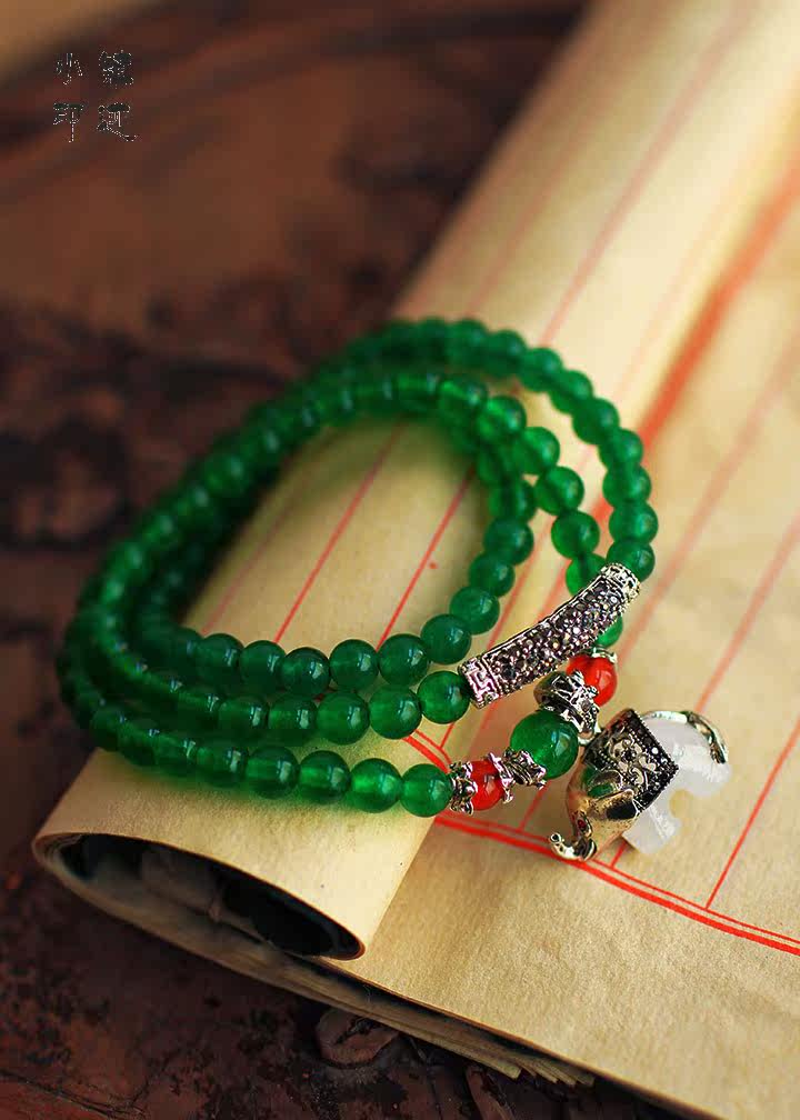 Specifications: Bracelet fold about 29cm (including pendants), green agate diameter of about 6mm, about the diameter of a small elephant 2X1.5cm, can be worn around the hand 3 laps