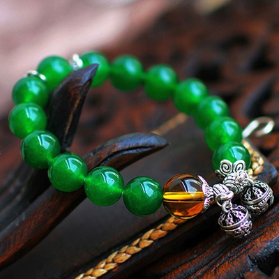 short paragraph retro bell Green Agate Bracelet