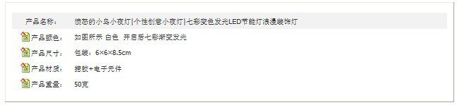 The colorful light, as long as the toggle switch at the bottom, you can make herlight, a light transparent color, red, white, blue, yellow, green, yellow green, purple,pink light, colorful gradient, faint flicker, continuous cycle changing.