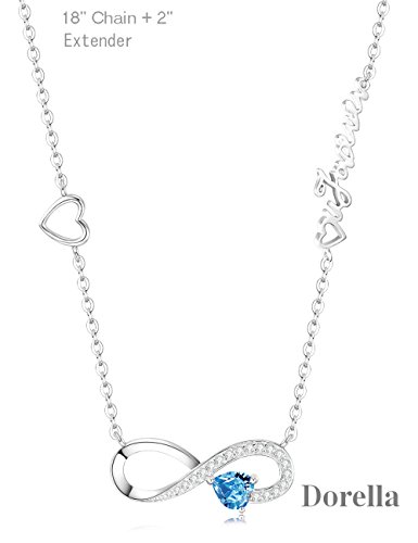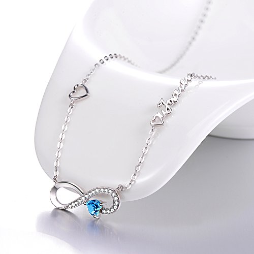 ♥HIGH QUALITY FINE JEWELRY♥ Infinity Design set with heart shaped Blue Topaz Swarovski with Engraved " Love you forever" as a perfect Anniversary gifts or Birthday gifts for women. 18K White Gold over Sterling Silver pendant with 18"+2" Chain.