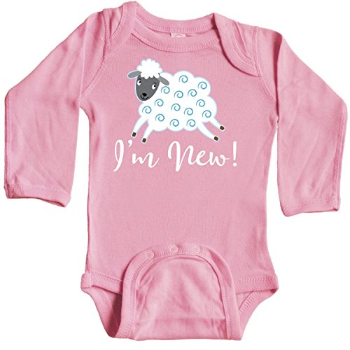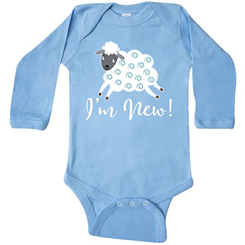 Product DescriptionCute baby boy Long Sleeve Creeper shower gift has blue and white sheep with I'm new saying for a new arrival.0