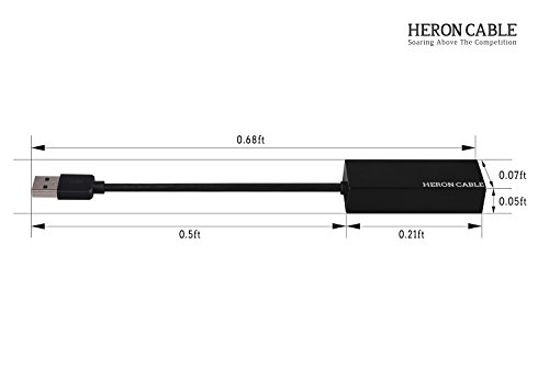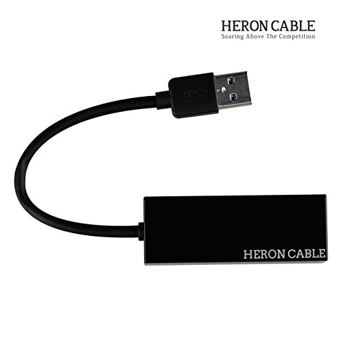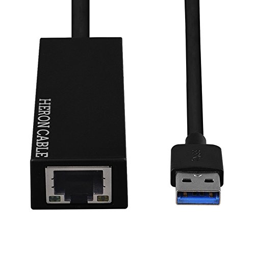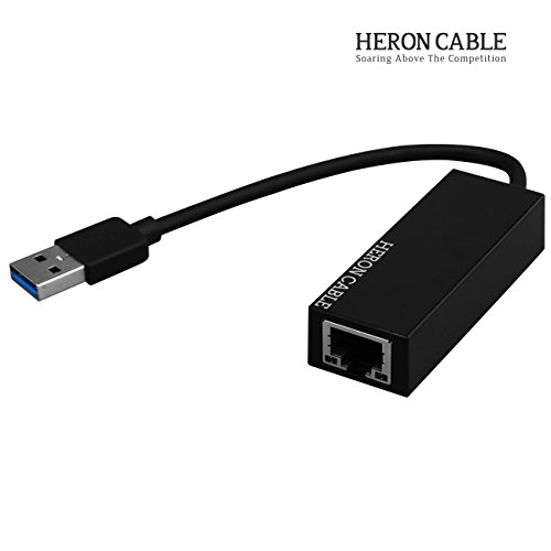 Studio : Heron Cable Publisher : Heron Cable Binding : Electronics Product Description The Heron Cable USB3.0 to Ethernet Adapter adds internet network connectivity to a computer using one of its USB3.0 ports. Wired connections typically provide far more stable and faster data transfer speeds than wireless (WiFi) connections. The Heron Cable USB3.0 to Ethernet Adapter is compatible with 10/100/1000 Mbps networks and supports data transfer speeds up to 5Gbps in 1000 Base-T networks. The adapter does NOT require any software, drivers or complicated installation processes. Just plug it in. No external power is required. The USB3.0 is compatible with MacBook Pro, MacBook, Google Chromebook Pixel, Dell XPS/Inspiron/Alienware, Asus ZenBook/VivoBook, Lenovo ThinkPad/Yoga and other USB Type-A devices. Compatible operating systems include Windows XP/7/8/8.1/10 and Mac OS X 10.6 to 10.13. 0
