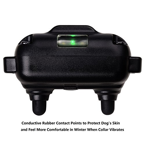 1.Rechargeabl:Both transmitter and receiver are rechargeable. 2.Waterproof:Dog can swim or walk in the rain with it. 3.Adjustable 1-99 levels for vibration and shock mode. 4.Auto power saving:The transmitter and receiver will enter sleep mode in 5 minutes if no operation. 5.Soft conductive rubber contact points:This can protect dog's neck skin and more comfortable than metal contact probes.