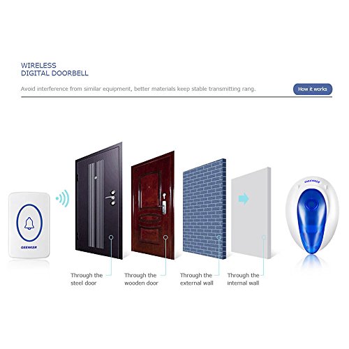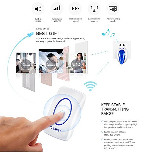 Wireless Range: 600FT/200M in the open air One receiver can pair 4 transmitters at most Ringtones: 36 selectable options Volume : 4 level adjustable levels