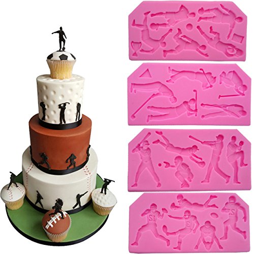 WYD 4 Pcs Football Rugby Baseball Golf Fondant Cake Decorating Cookie Making Tool Sugarcraft Soap Silicone Mold For Chocolate Candy Mold