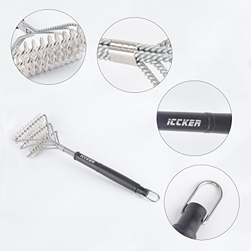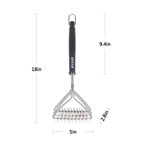 ★Newest Vesion:Camparing with similar bristle free grill brushes,Iccker grill brush adjusted the distribution of spring coil.Either side of Iccker BBQ brush won't break or stratch our hands. New version ensure no deformation force. more reliable.Stiff Rigid Construction, Yet Light-Weight