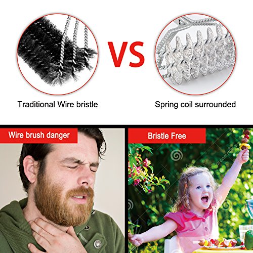 ★Security first:Patented stainless steel spring coil designed Iccker grill brushes prevent any risk of swallowing wire brush bristle instead of the wire brush.stars.No Loose Bristles!FDA-Approved.Health is priceless.Never need to worry about the wires breaking off and ending up in your food.Never