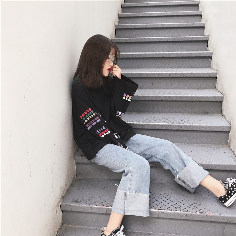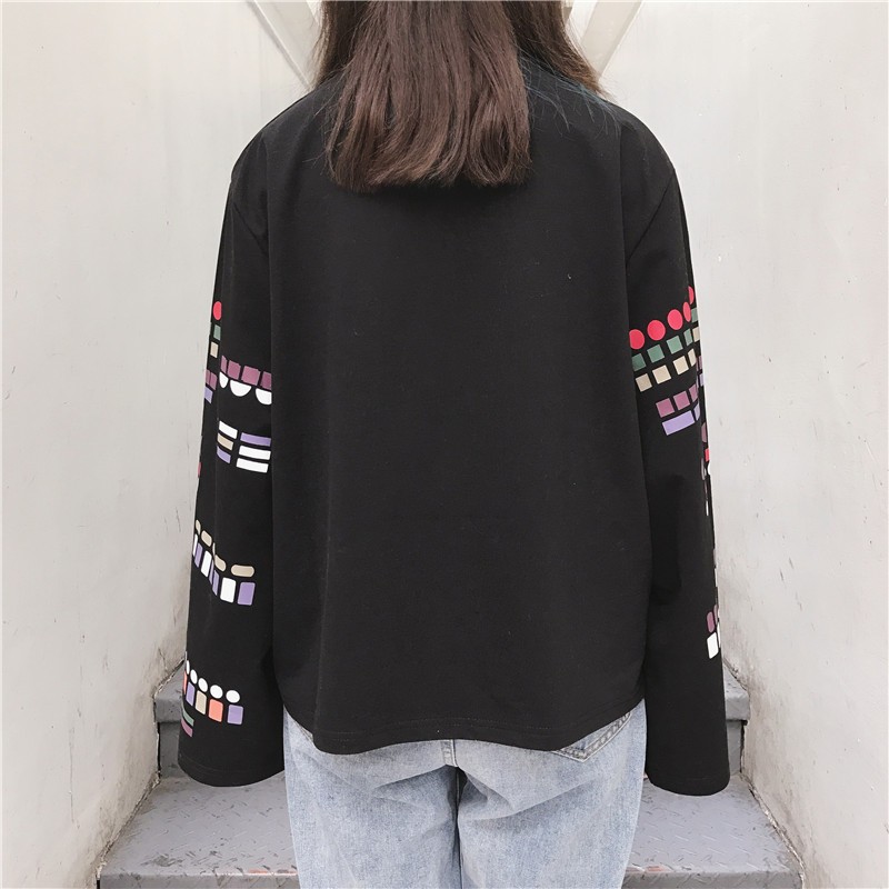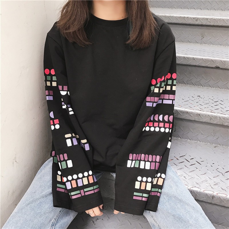 ビビットな袖の柄が目を引くカジュアルなロングトップス